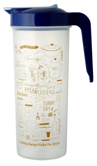 キッチンツール柄が可愛い♪1300mlサイズのウォータージャグです。冷蔵庫のポケットにも入ります。
