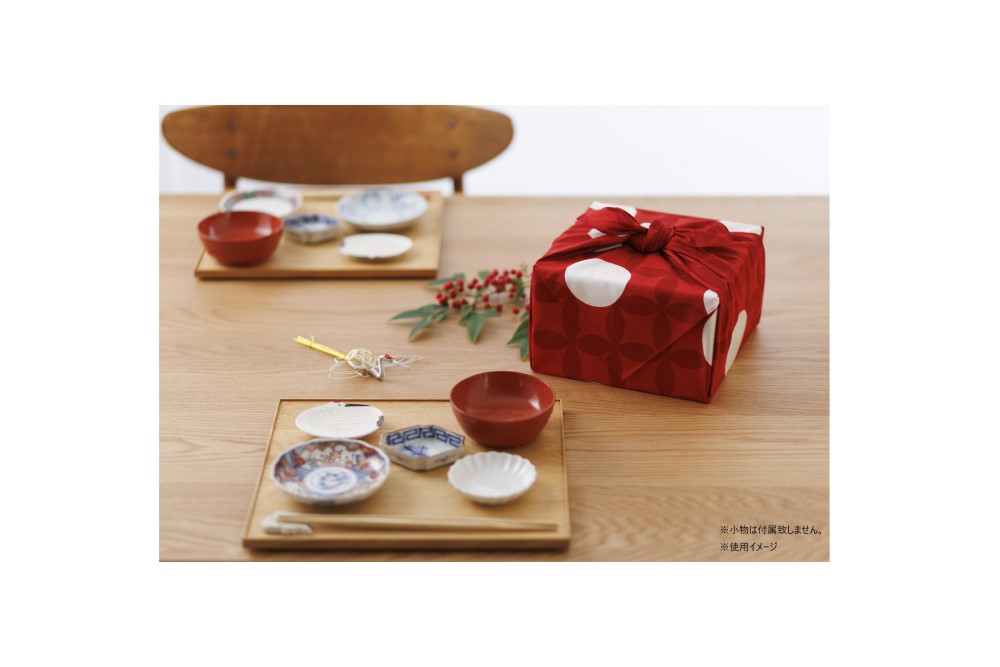 婚礼や長寿のお祝い、迎春や季節の進物など、様々なお祝いやギフトシーンに合う縁起模様を華やかな紅白や金銀で描いています。包んでも広げても美しいデザインで、贈り物を渡す時も広げた時も感動していただけます。