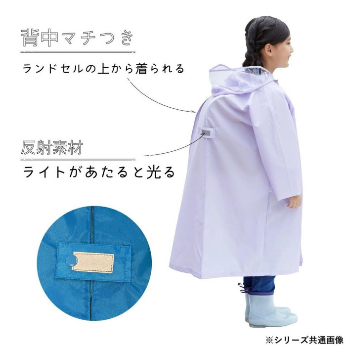 | 背中マチつきで、ランドセルの上から着られるレインコートです。透明のひさしフードで視界も確保。レインコートには、ライトが当たると反射する反射素材や名前を書き込めるスペースがついています。便利な収納袋付き。 ※長時間の着用、外気温、運動量により発汗した場合、蒸れる場合があります。 ※実物に近い状態になるよう努力しておりますが、光の具合やモニターの環境によって 商品の色が実物と異なって見える場合がございますのでご了承ください。 |
