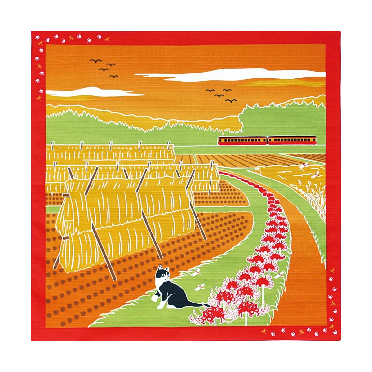 風呂敷 包み ラッピング エコバッグ タペストリー 猫 景色 秋 かわいい おしゃれ プレゼント ギフト ヤマコー たまのお散歩 小風呂敷 彼岸花