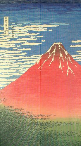 のれん 金糸ラメ 赤富士 85×150cm 14275