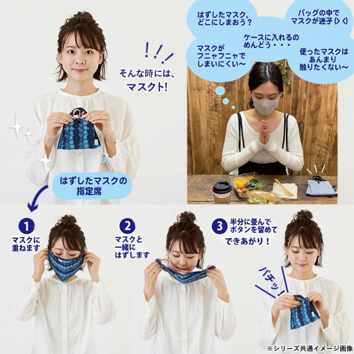 | 毎日の必需品となったマスク。出番がふえたからこそ気になることも。ランチやメイクなおしの間など、ちょっと外したいときに。持ち手にマスクのゴムを引っ掛けながらはずすだけ。直接マスクに触らず収納&コンパクトに。便利で持っててかわいいデザイン。見た目も楽しいトート型。マスクを外す時だって楽しく!いつでも清潔に。洗濯可能で、衛生的に安心してご利用いただけます。 ※本品には故意に無理な力をかけないでください。破損の原因となる場合があります。 ※商品の色は、コンピュータディスプレイの性質上、実際の色とは多少異なります。 ※生地をランダムに裁断するため、柄の出方に個体差が生じます。出来上がりはひとつひとつ異なりますので、予めご了承ください。 ※その他、商品に付属する注意書きをご確認の上ご使用ください。 【色移りを防ぐため、以下の内容を守ってご使用ください】 ※保管の際は、温度および湿度の低い風通しのよい場所に保管し、重ね置きなどはお避けください。 ※洗濯時、付属パーツは外してから行ってください。 ※アイロンのご使用はお避けください。 ※濃色品は摩擦、水濡れによる色落ち、色移りすることがありますので、淡色のものとの組み合わせの際には十分ご注意ください。 ※気温の上昇する室内や車内等に長時間放置されますと移染する恐れがございますのでご注意ください。 |