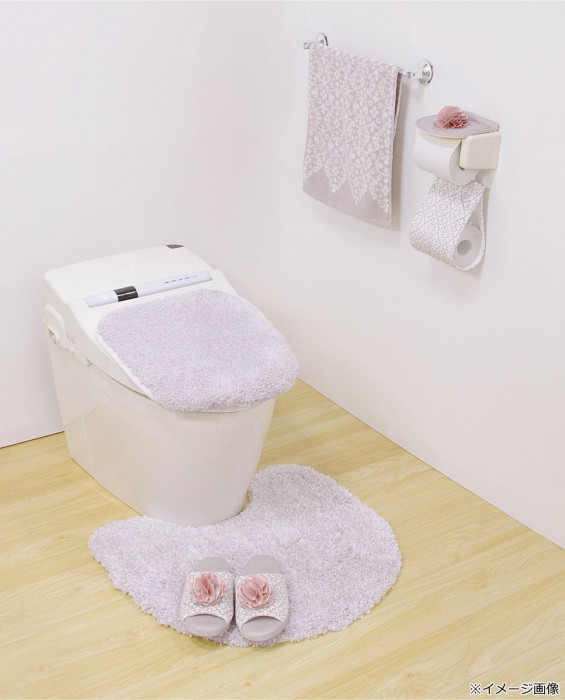 優しい色合いのトイレタリー。サテンのコサージュがポイントのペーパーホルダー。オーナメント柄の地模様で同シリーズのマットとのコーディネートがおすすめです。
