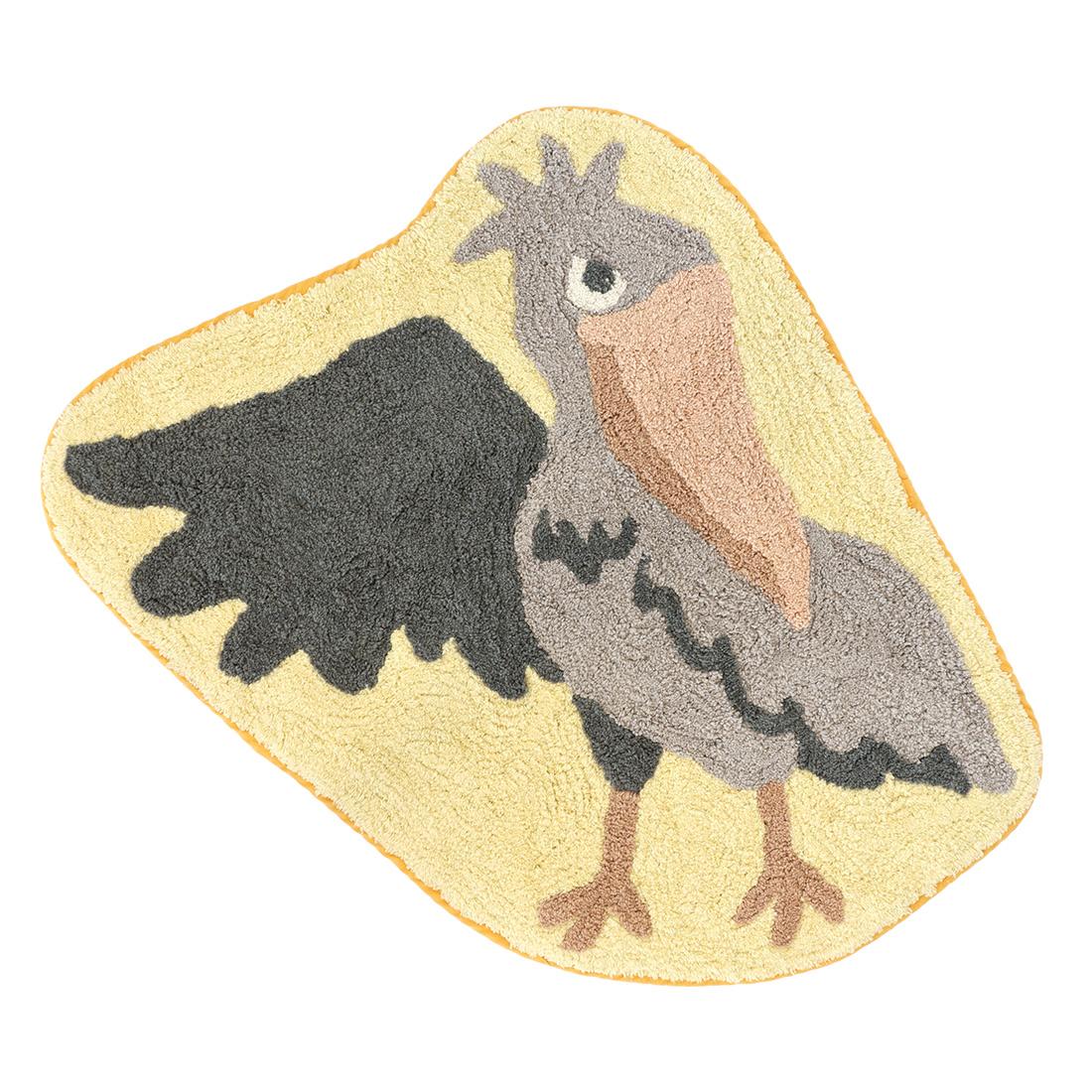 ハシビロコウマニアさんにはたまらない。きりっとしたハシビロコウの姿をマットに表現しました。子供部屋や玄関に敷けば、ほっこり楽しい空間に。