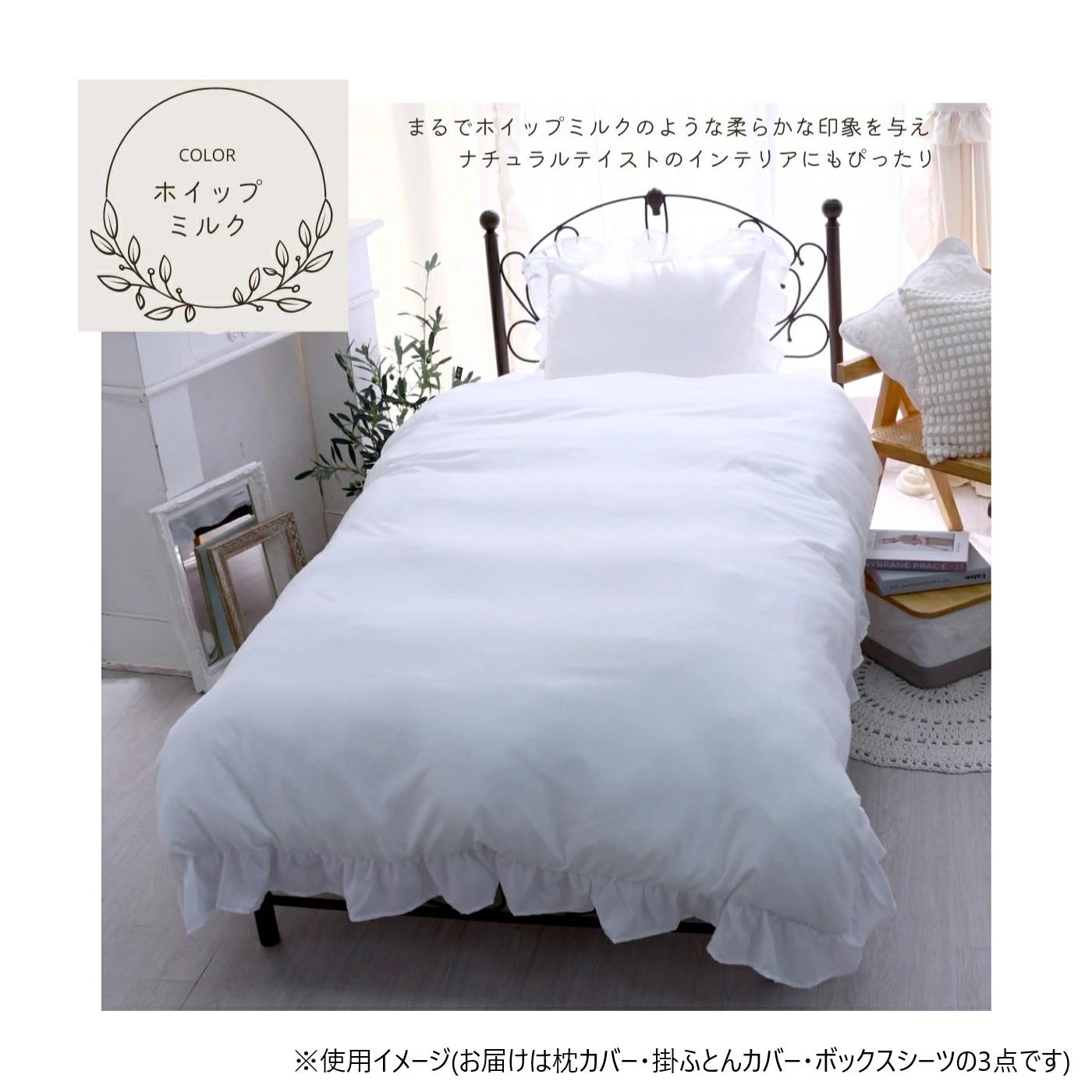 | 大人可愛いフリルの付いた布団カバー3点セットです。 ※ご使用のモニターによっては、商品画像等の画面表示上の色合いと、実際の商品の色が異なる場合があります。ご了承ください。 |