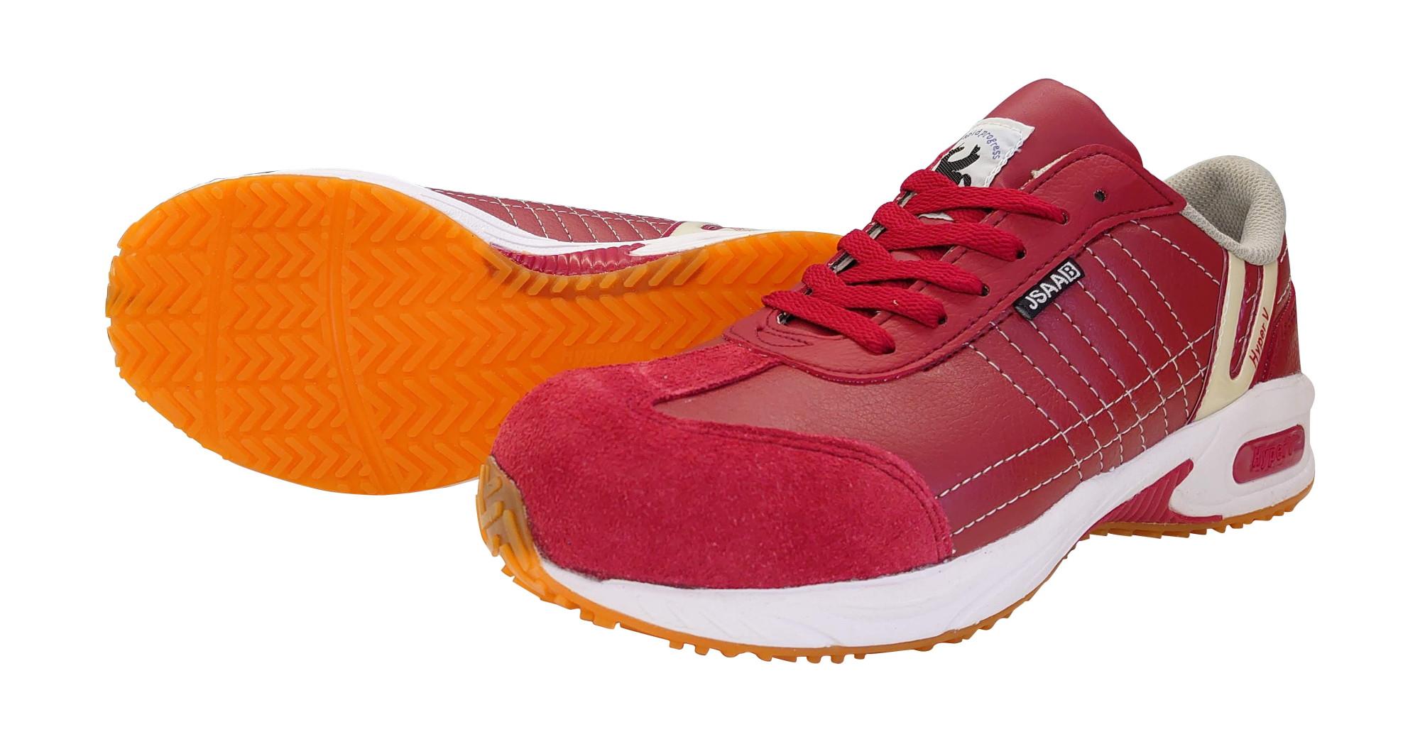 JSAA B種適合セーフティ。高い耐滑性能があり、水や油など滑りやすい場所での作業で効果を発揮!スタイリッシュなデザインで、アッパーに高級感ある合皮を採用しています。