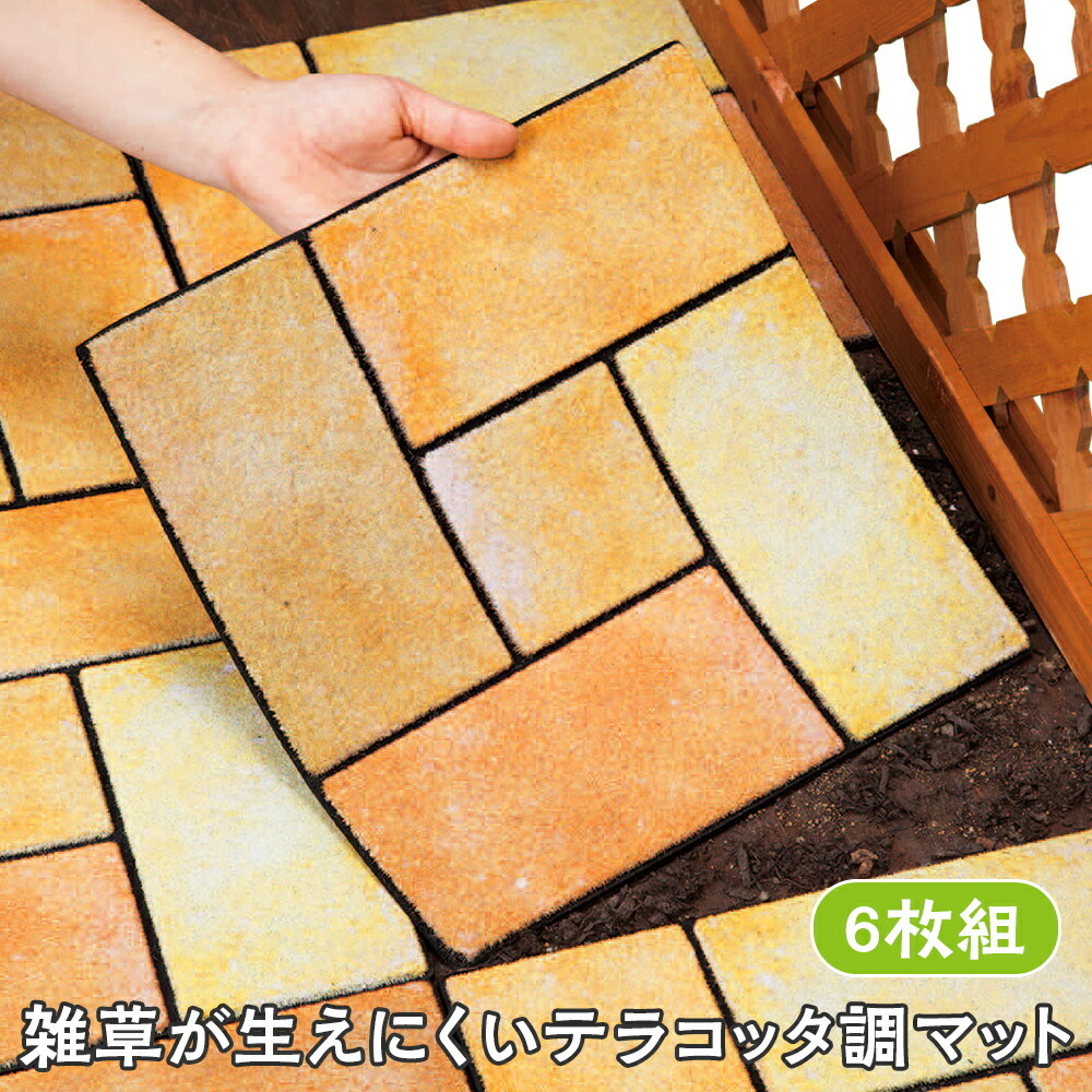 雑草が生えにくいテラコッタ調マット 6枚組 水洗いOK カットOK 雑草対策 ガーデンタイル 屋外 DIY 庭 ベランダ 玄関マット 防草 おしゃれ