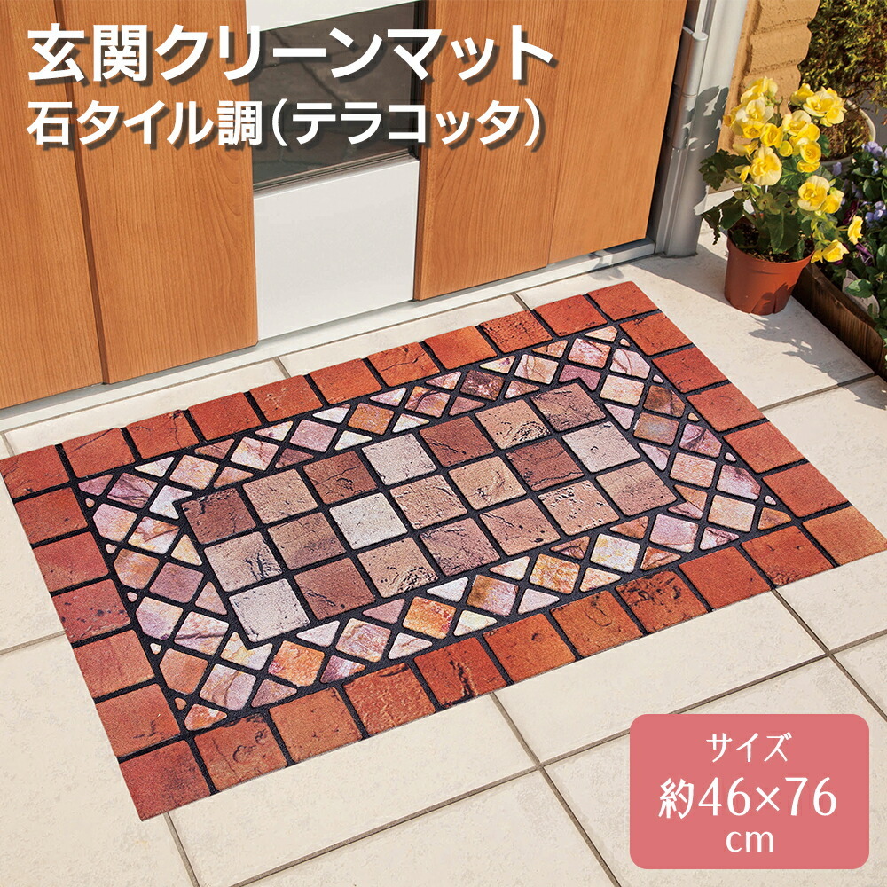 玄関クリーンマット 石タイル調 玄関マット テラコッタ 長方形 水洗いOK おしゃれ 玄関 泥落とし 土落とし 石タイル調 エクステリア 滑り止め