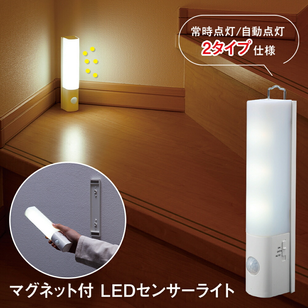 マグネット付LEDセンサーライト 電池式 人感 フットライト 廊下 階段 懐中電灯 ハンディライト 階段 廊下 持ち運び 災害 停電 節電 防災