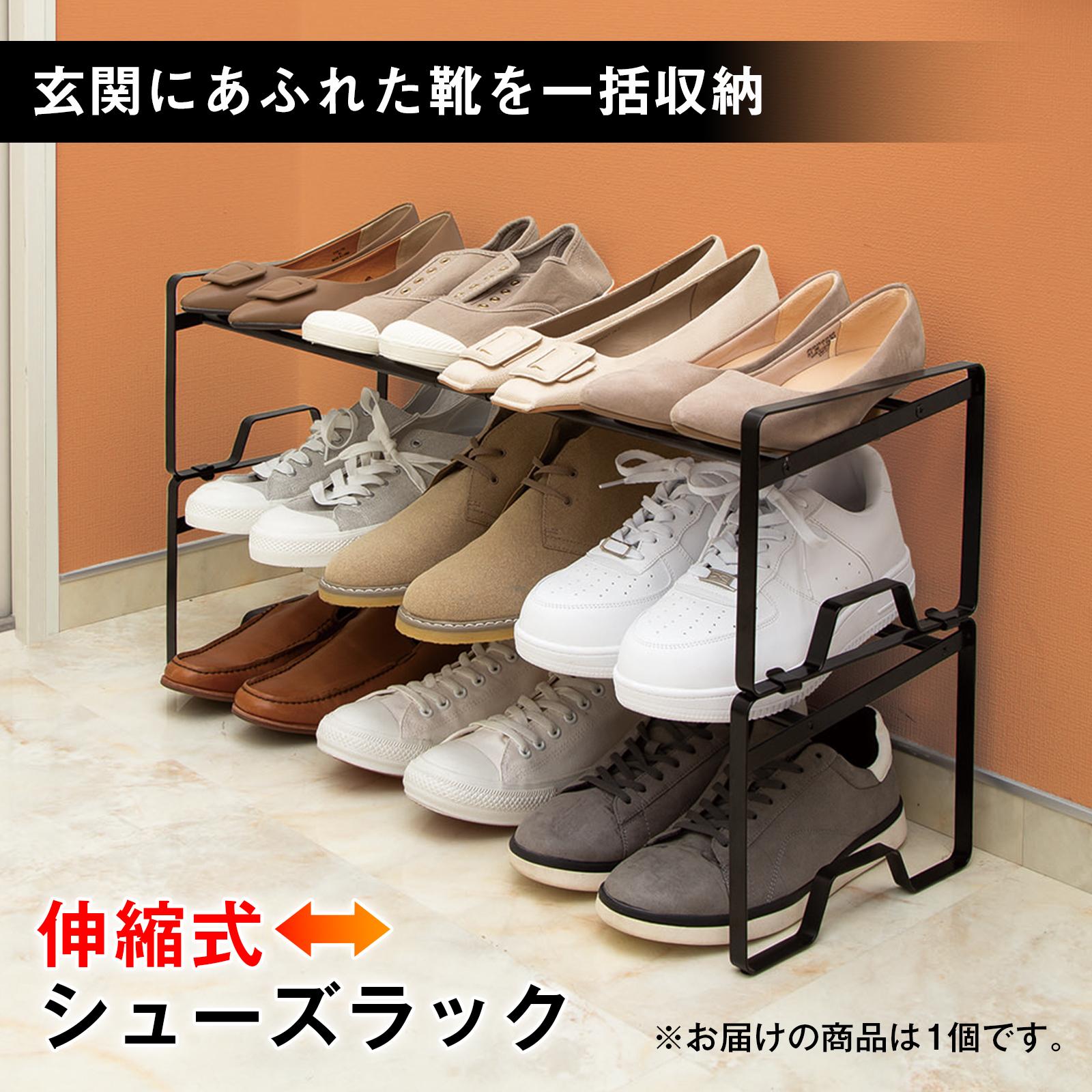 伸縮式シューズラック1台 耐荷重3kg 41〜70cm伸縮 省スペース 玄関収納 有効活用 溝付き 持ちやすい 滑り止め付 重ね置きOK スリム