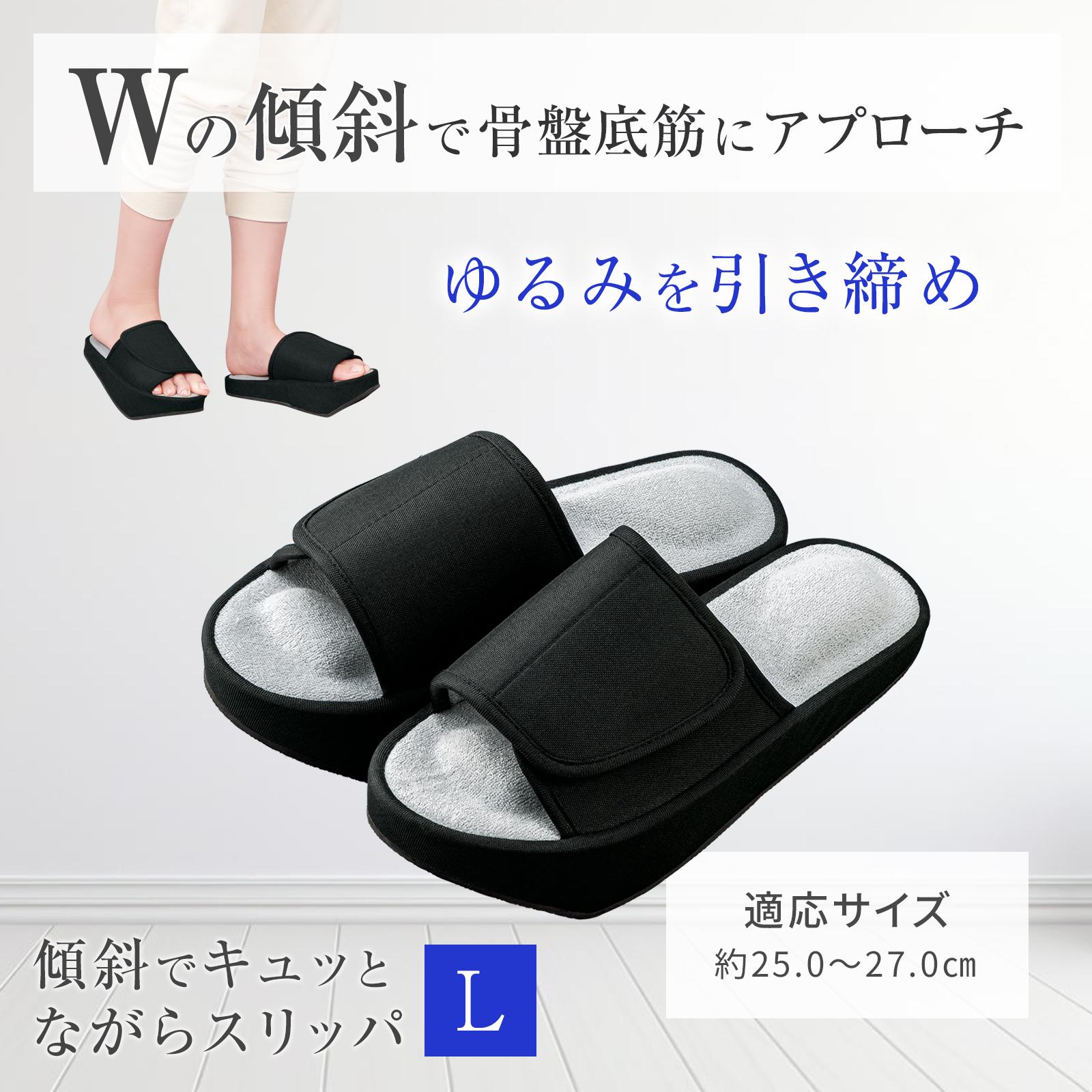 傾斜でキュッとながらスリッパ L 25.0〜27.0cm 骨盤底筋 引締め お尻 太もも ふくらはぎ 内もも 料理 掃除 面ファスナー オープントゥ