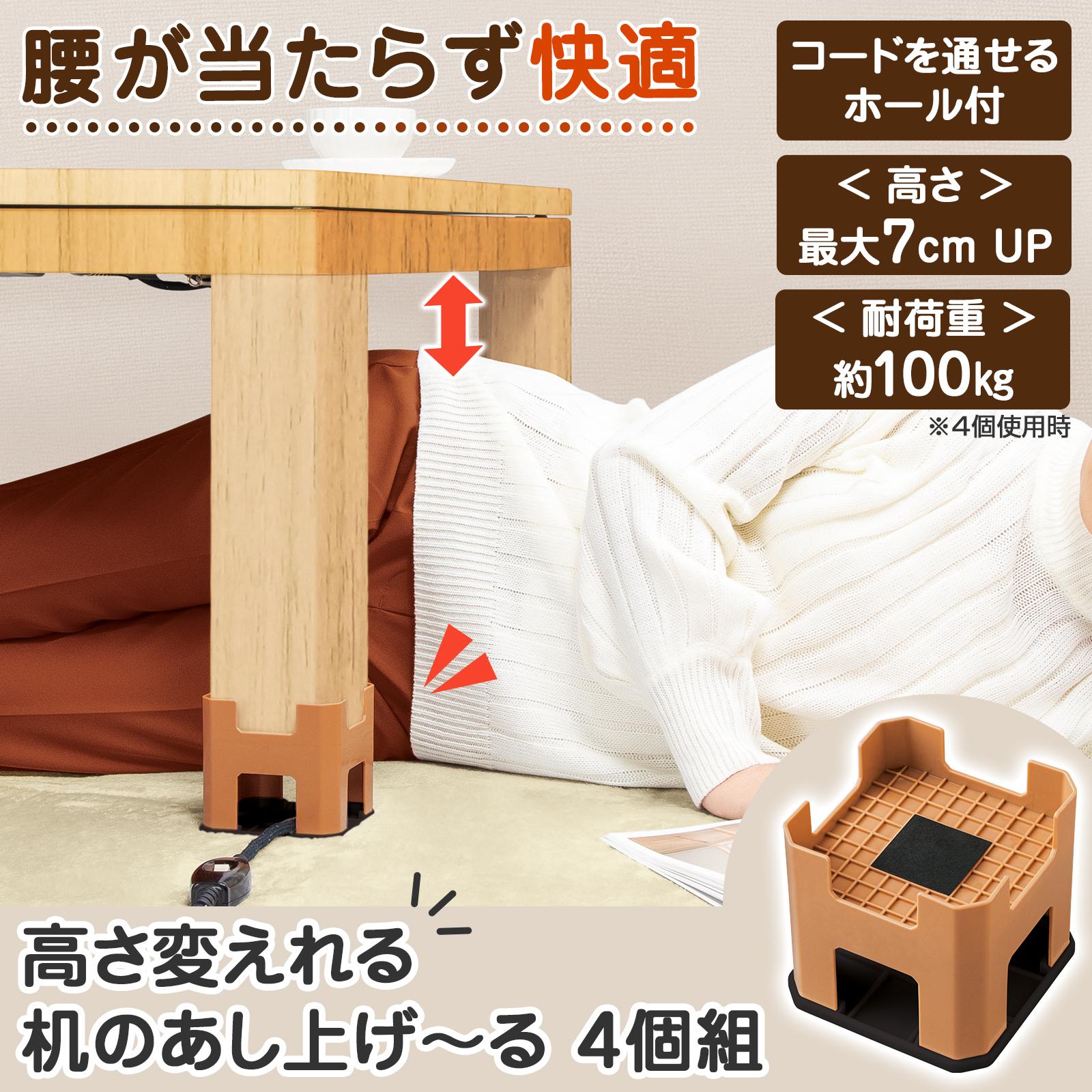 高さ変えれる机のあし上げ〜る 4個組 7cm 3cm 2段階 こたつ 机 テーブル 脚 高さ調節 継ぎ脚 継ぎ足 底上げ 高くする コードホルダー