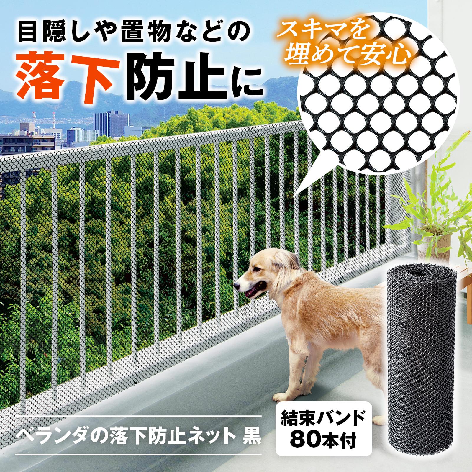 ベランダの落下防止ネット 黒 40cm×8m 結束バンド80本付き 目隠し 網 はさみでカットOK ペット 子供 鉢植 おもちゃ 害鳥 階段 ゴミ出し