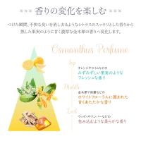 つけた瞬間、シトラス系のスッキリとした香りから金木犀の香りへと変化。オーデパルファンで1日中香りが続く。