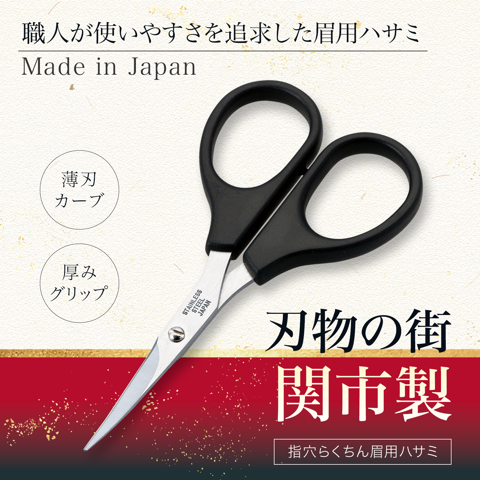 ・刃物の有名産地、岐阜県関市製の眉用ハサミ