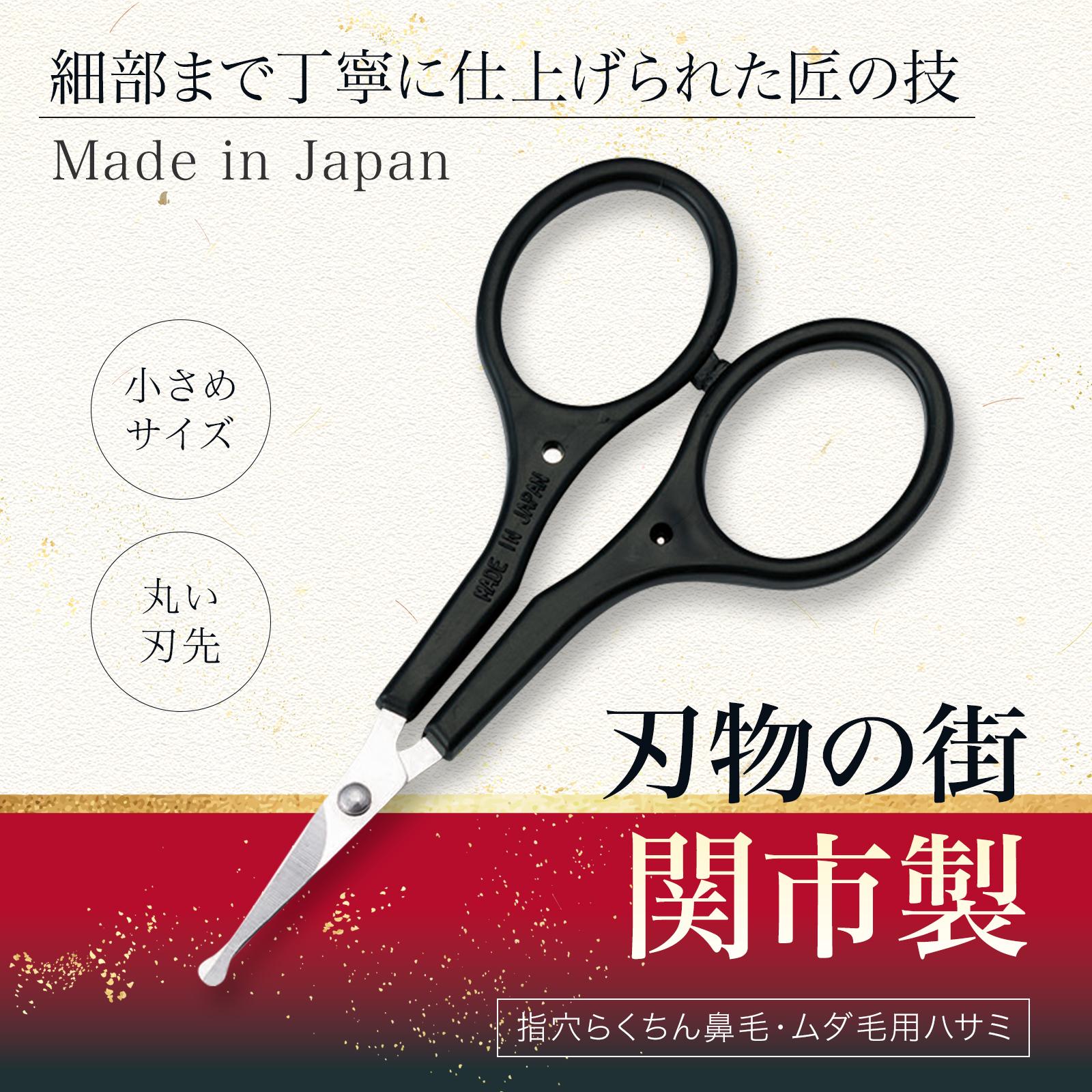 指穴らくちん 鼻毛・ムダ毛用ハサミ キャップ付き 小さめ 刃先 丸い 鼻毛切り 鼻毛ハサミ 眉カット エチケット ステンレス刃物鋼 関市製 日本製