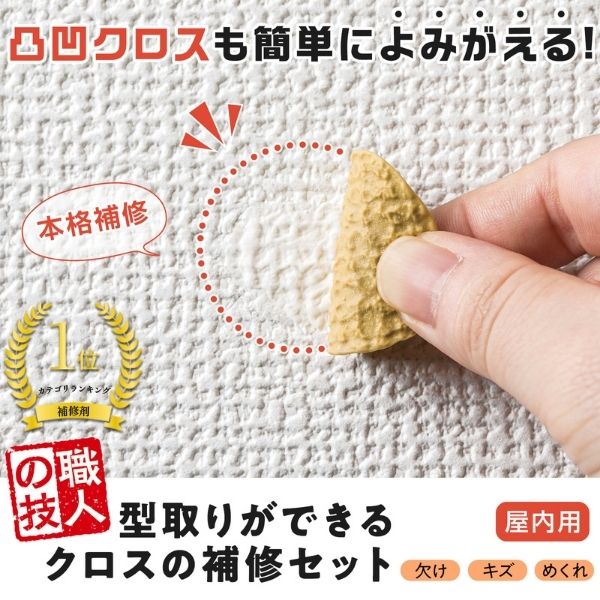 業者を呼ぶには小さな欠け・キズ・めくれを、自分で本格補修!凸凹クロス壁も簡単によみがえる♪パテ材に絵具を入れて練れば着色できるので、色付きのクロス壁も補修できます。 ※布製のクロス壁には使用できません。 ※本品は屋内専用です。屋外や常に水のかかる場所には使用しないでください。 |