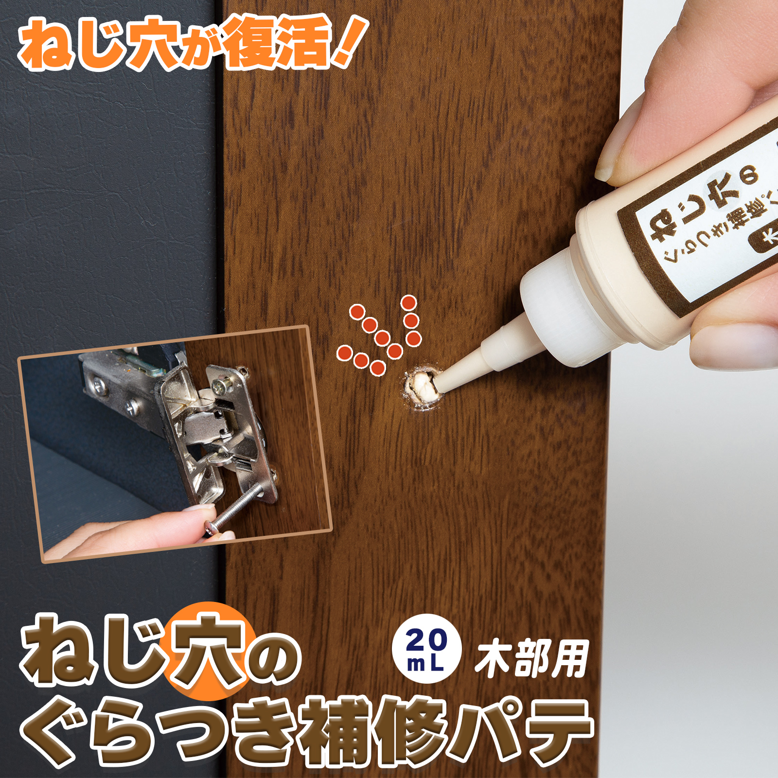 ねじ穴のぐらつき補修パテ 木部用 20ml 先細ノズル ねじ穴 ピン穴 フック穴 窓枠 蝶番 DIY 穴埋め 補修 復活 ネジ穴が潰れた時 日本製