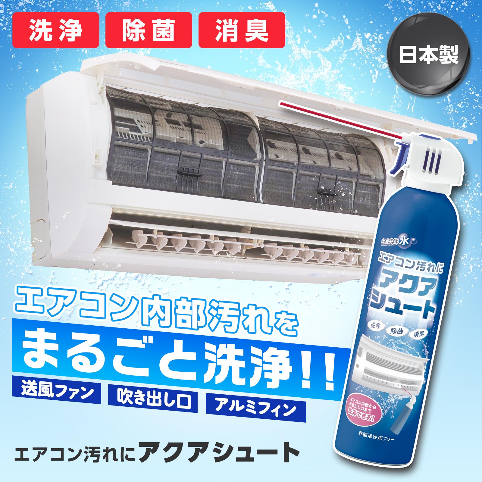 エアコン汚れに アクアシュート 420ml 6〜8畳用1台分 ノズル付 洗浄 除菌 消臭 送風ファン 吹き出し口 アルミフィン 電解水 省エネ 日本製