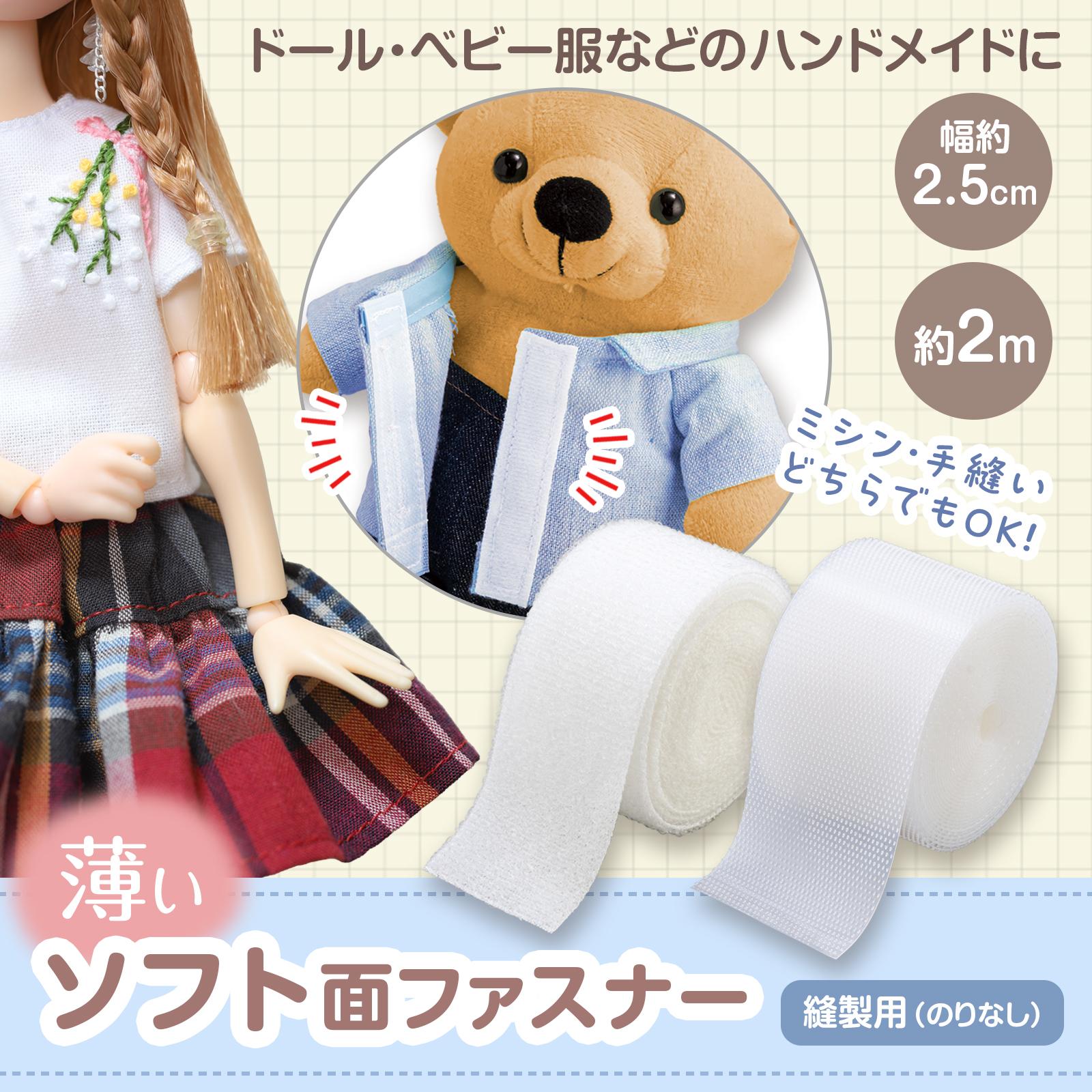薄いソフト面ファスナー 極薄 薄型 接着 柔らかい チクチクしにくい 糊なし 白 手芸 裁縫 ドール ベビー ハンドメイド ぬい活 推し活グッズ
