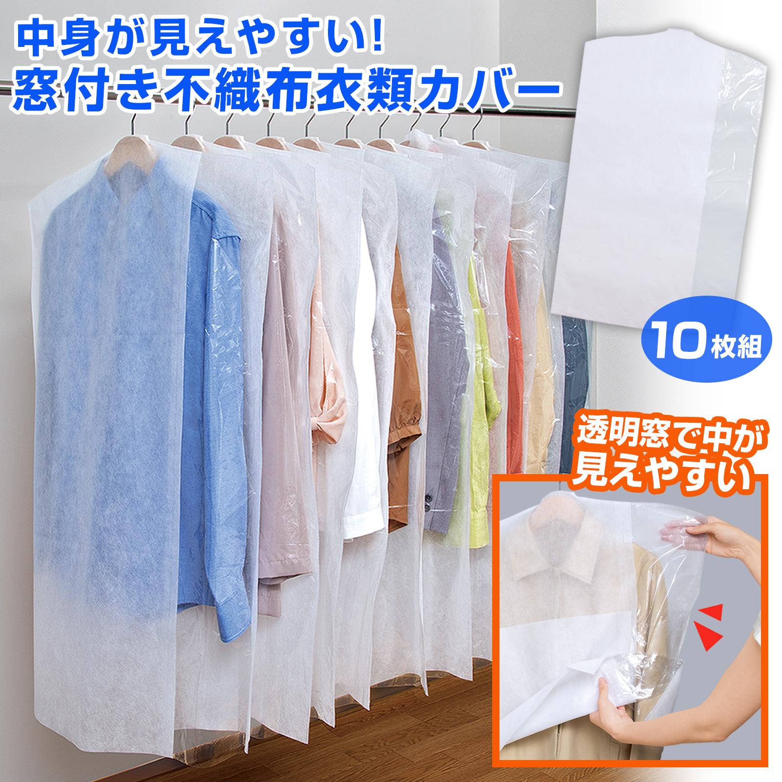 窓付き不織布衣類カバー 10枚組 軽量 ホコリよけ 通気性が良い 衣替え 収納 保管 上から被せる 窓付き 中身が見えやすい 不織布 衣類カバー