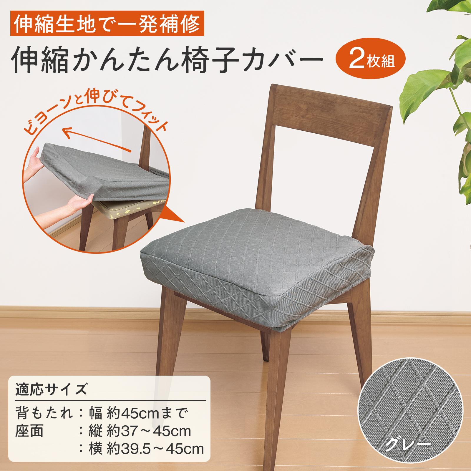 伸縮かんたん椅子カバー グレー2枚組 椅子カバー 座面カバー ストレッチ 伸縮 洗える チェアシート 伸縮椅子カバー 座面 椅子座面カバー チェアカバー