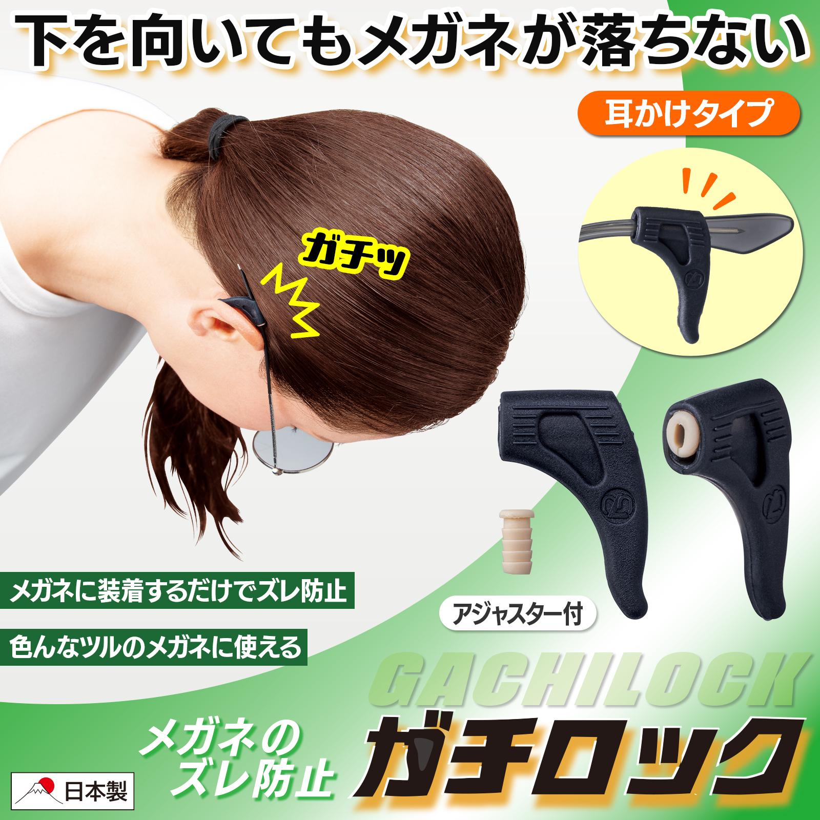 メガネのズレ防止 ガチロック メガネ ズレ防止 耳かけ フック 固定 眼鏡 ストッパー アジャスター付 ずれ落ち防止 滑り止め スポーツ 運動 日本製