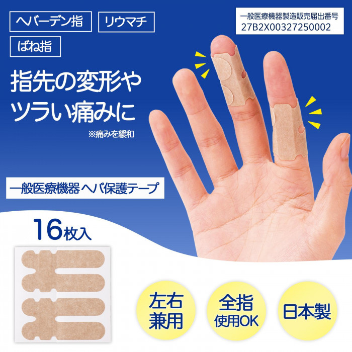 一般医療機器 ヘバ保護テープ 16枚入 テーピング 指サポーター 指関節サポーター へバーデン結節サポーター 指 医療用テープ 親指 テーピングテープ 日本製