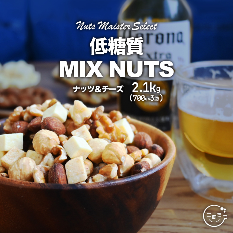 低糖質ミックスナッツ 2.1kg 700g×3袋 アーモンド クルミ ヘーゼルナッツ チーズ 無添加 ノンオイル 無油 無塩 完全無添加 おつまみ 自然の蔵