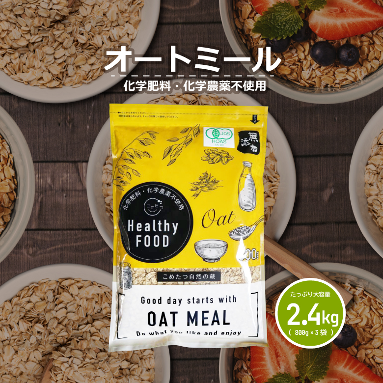 ロールドオーツ オートミール 2.4kg オーガニック 有機 オーツ麦 ダイエット 置き換え 無添加 化学肥料 化学農薬不使用 800g×3袋 自然の蔵