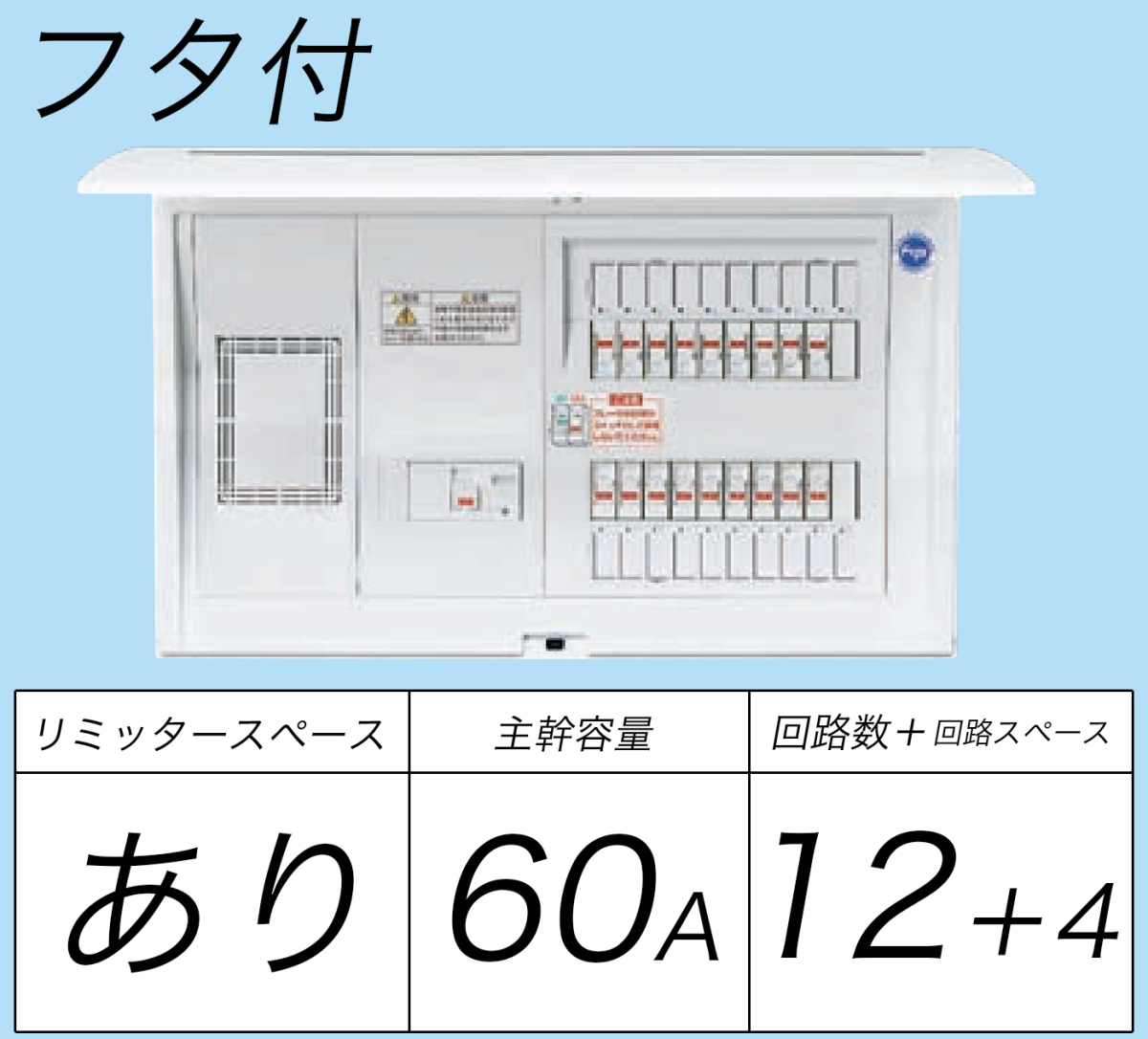 BQR36124:住宅用分電盤(露出・半埋込両用形)(ドア付)(リミッタースペース付)(単3:主幹:ELB60A分岐:12+4)