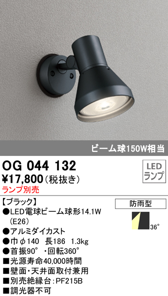 OG044132 屋外用スポットライト フランジタイプ ビーム球150W相当 ランプ別売