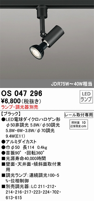 OS047296:スポットライト(ランプ別売) プラグタイプ(壁取付可) 調光 JDR75W相当