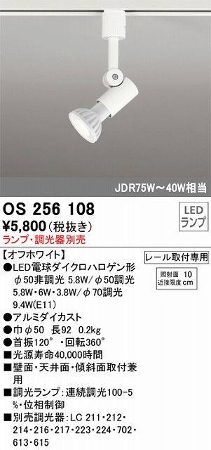 OS256108:スポットライト(ランプ別売) プラグタイプ(壁取付可) 調光 JDR75W相当