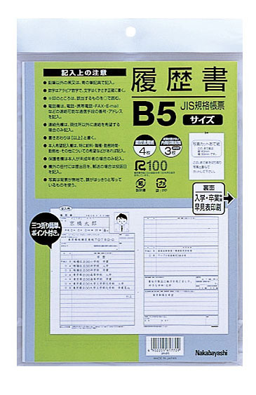 ナカバヤシ 履歴書 JIS規格帳票 B5 ヨR-B5