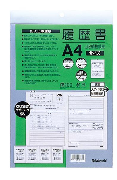 ナカバヤシ 履歴書 JIS規格帳票 A4 ヨR-A4S