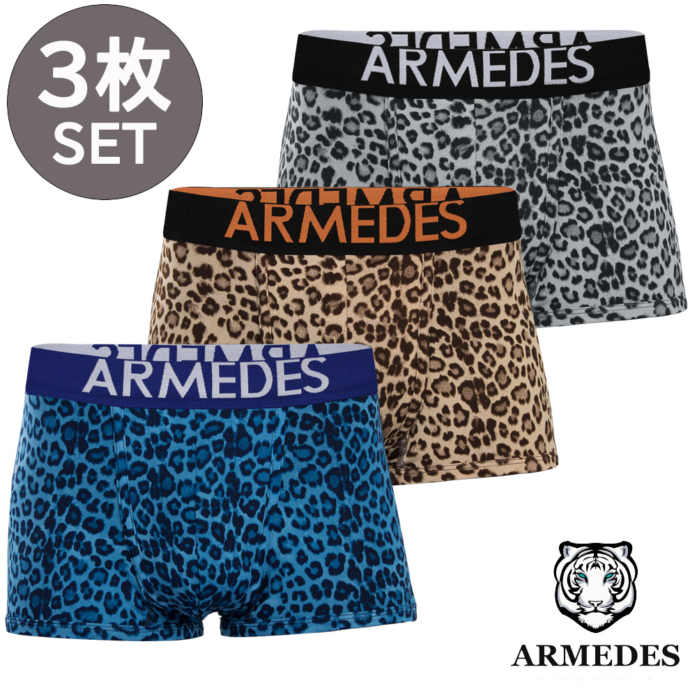 3枚セット ARMEDES アルメデス アンダーウェア ボクサーパンツ カール防止 吸汗速乾 速乾性抜群 ドライ素材 メンズ ヒョウ柄 全3色 M-3XL AR-01