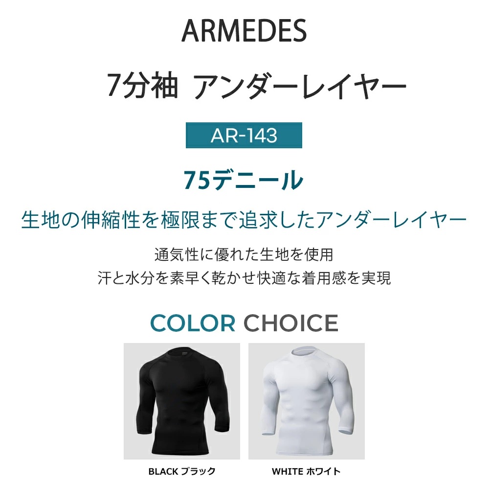 【ARMEDES】 アルメデス コンプレッションインナー 7分袖インナー ムーブフィット クールネック オールシーズン テックフィット メンズ AR143