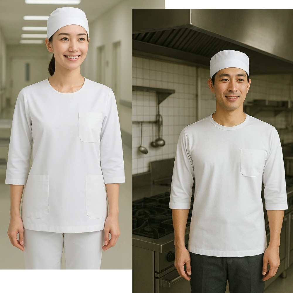 オールシーズンで快適に着用できる7分袖のインナーです。吸汗速乾性と通気性に優れ、工場や病院、介護現場、調理場など多様なシーンで活躍します。