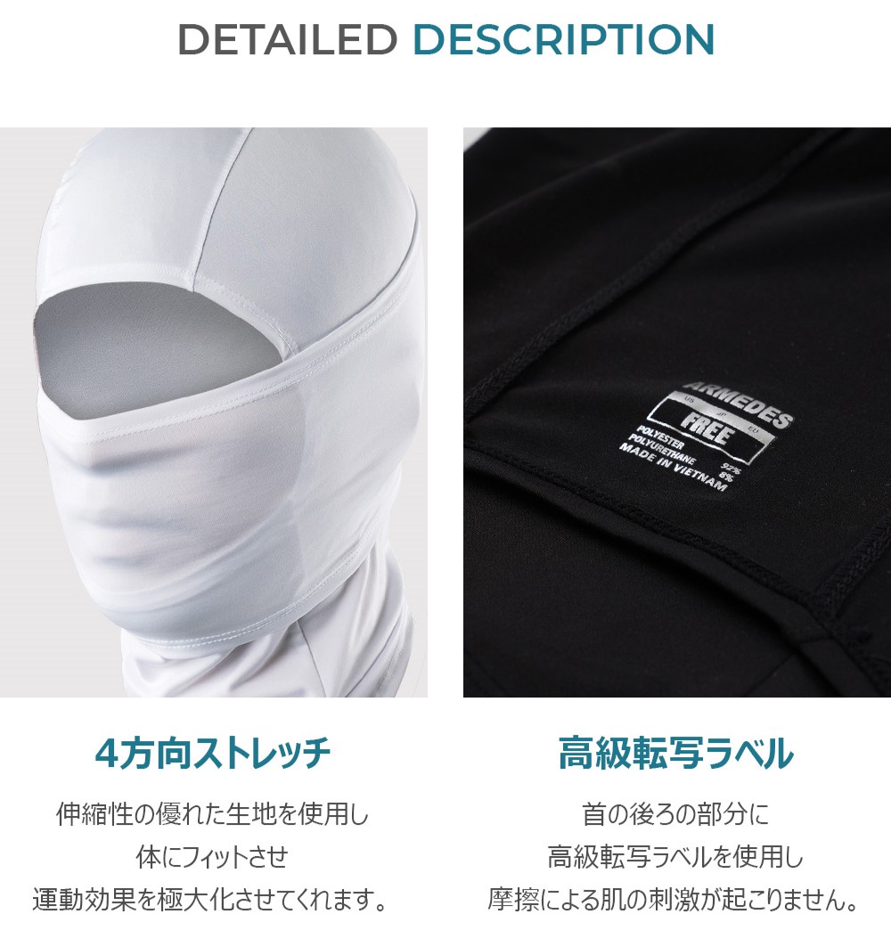 2枚セット 送料無料 ARMEDES アルメデス バラクラバ フェイスマスク ストレッチ 軽量 クーリング生地 ユニセックス 男女兼用 フリーサイズ 全3色 夏 AR19