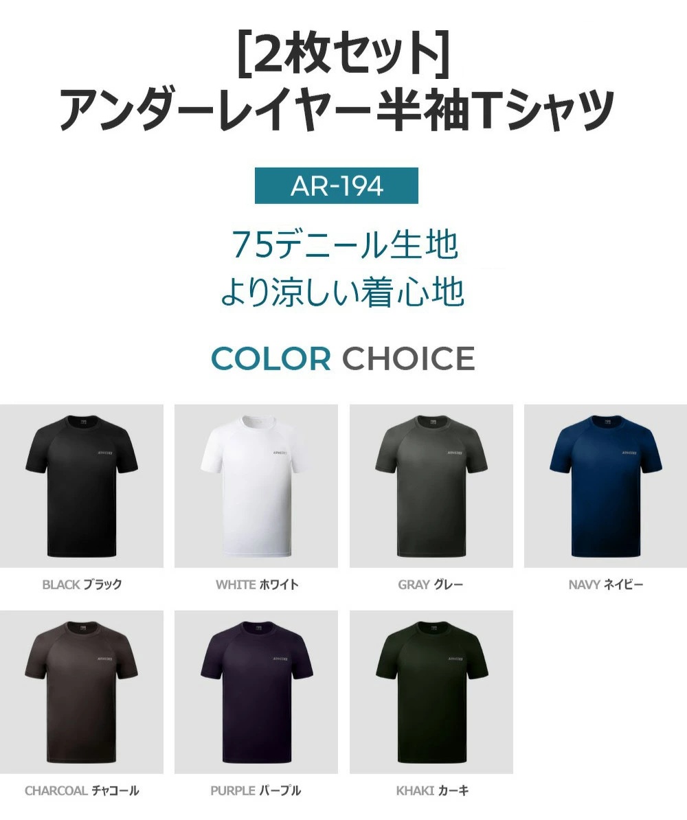 2枚セット Tシャツ 送料無料 ARMEDES アルメデス スーパードライ アンダーレイヤー ラウンドネック 半袖 接触冷感 テックフィット メンズ オールシーズン AR194