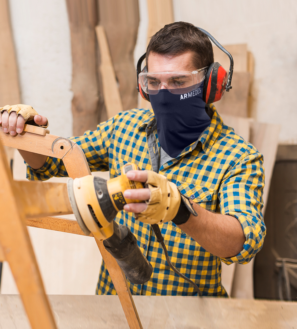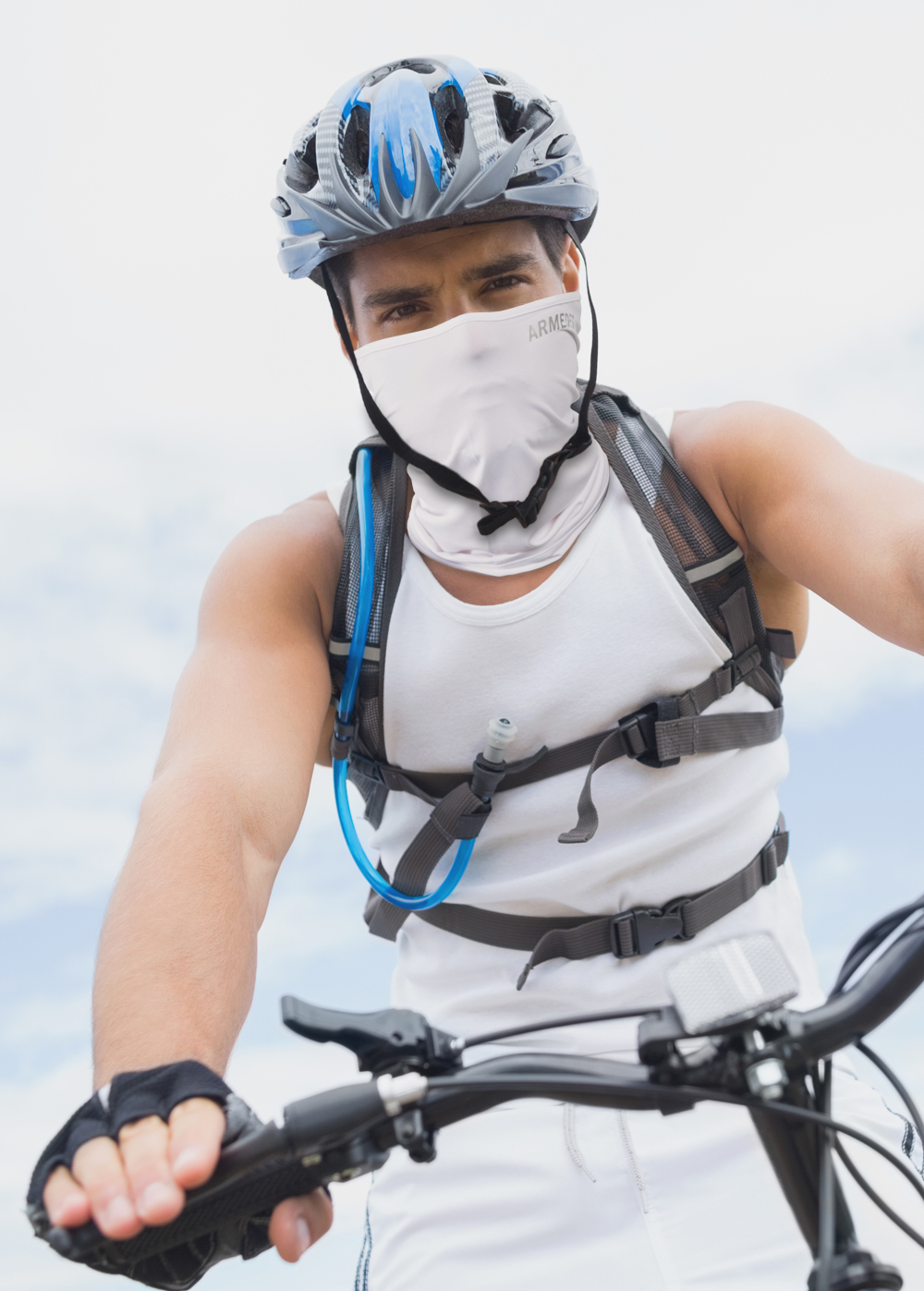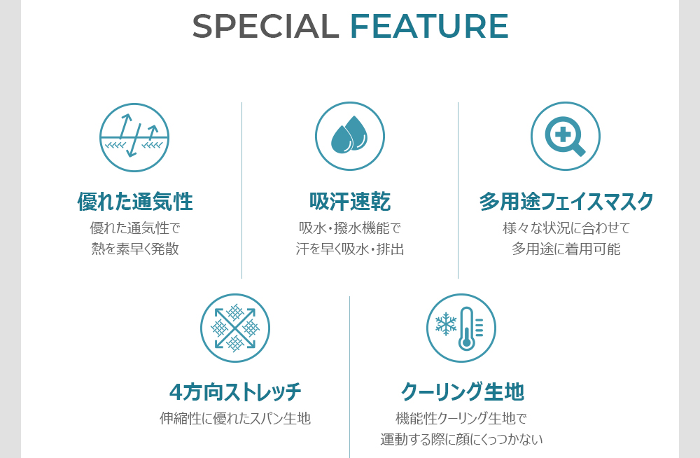 この機能性フェイスマスクは、首元から鼻までしっかりと覆う形状で様々な用途に対応します。