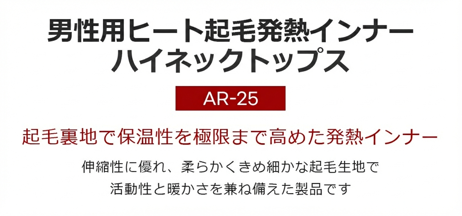 こちらの男性用発熱インナーは、ハイネックタイプで首元までしっかり保温し、寒さから体を守ります。