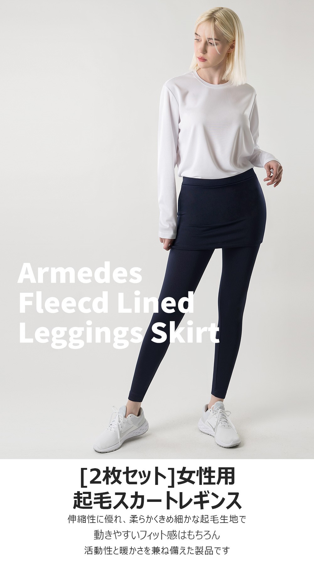 2枚セット 送料無料 ARMEDES アルメデス レギンス 機能性 起毛素材 防寒 保温 4WAYストレッチ スリム スカート デザイン 冬 レディース S-L 全4色 AR39