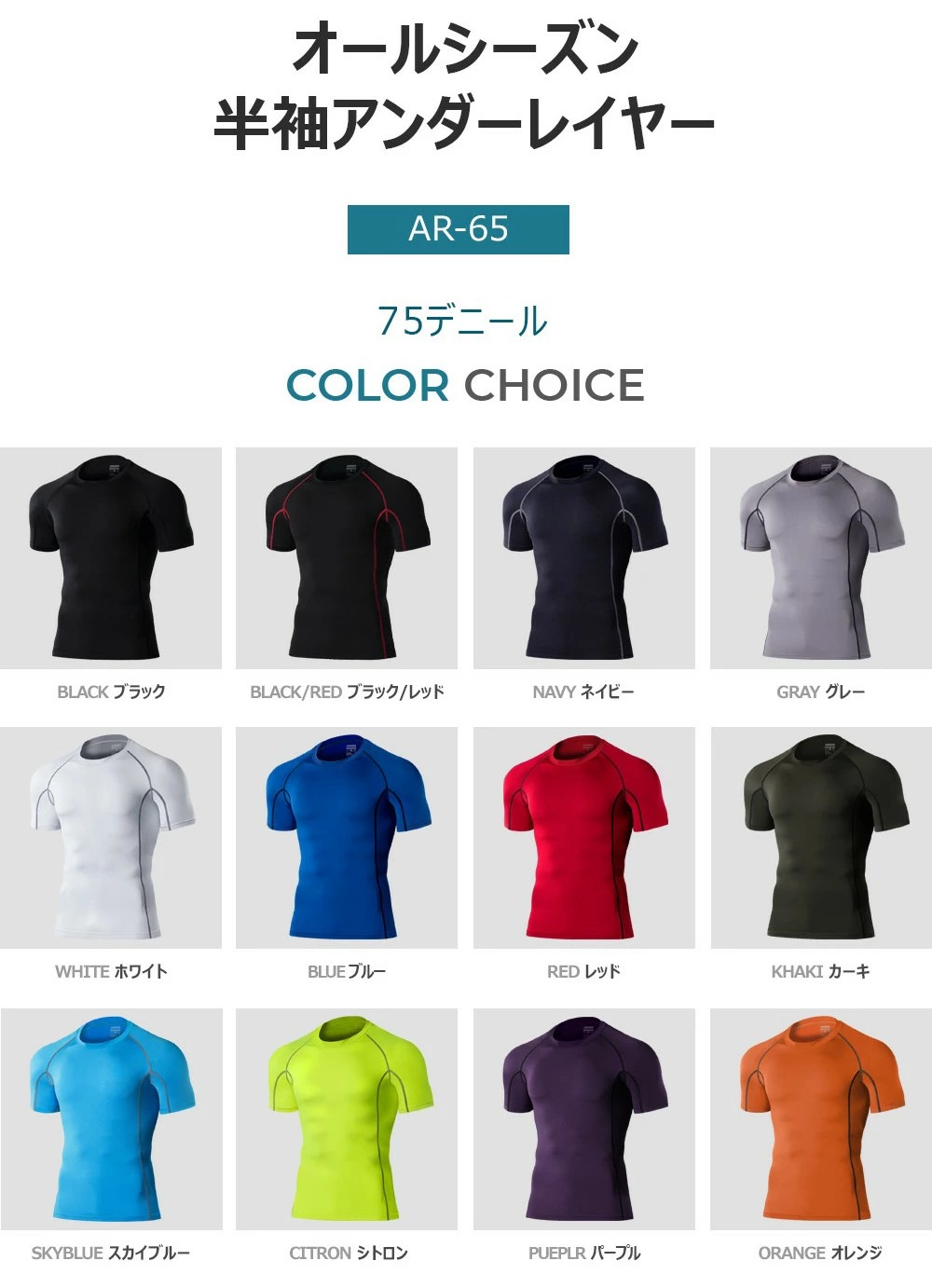 ARMEDES アルメデス コンプレッション インナー 接触冷感 吸汗速乾 伸縮性 通気性 半袖 丸首 メンズ M-3XL 全12色 オールシーズン AR65 送料無料