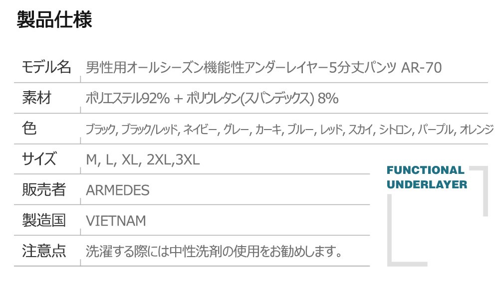 送料無料 ARMEDES コンプレッション ボトムス タイツ 接触冷感 スーパードライ テックフィット 前閉じ インナー 5分丈 メンズ M-3XL 全11色 オールシーズン AR70