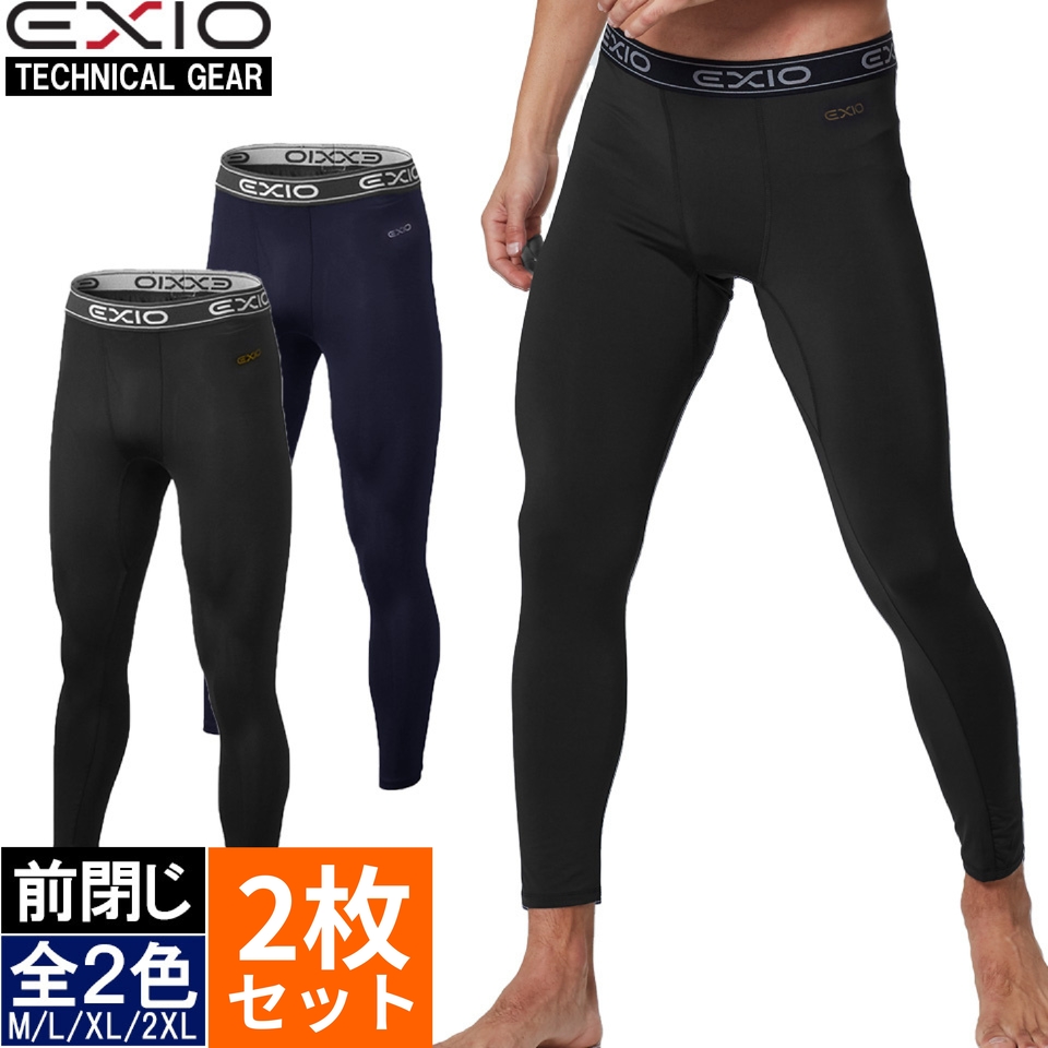 EXIO エクシオ 2枚セット 接触冷感 コンプレッション タイツ メンズ 9分丈 前閉じ UVカット 吸汗速乾 スポーツインナー P-06 M-2XL 全2色