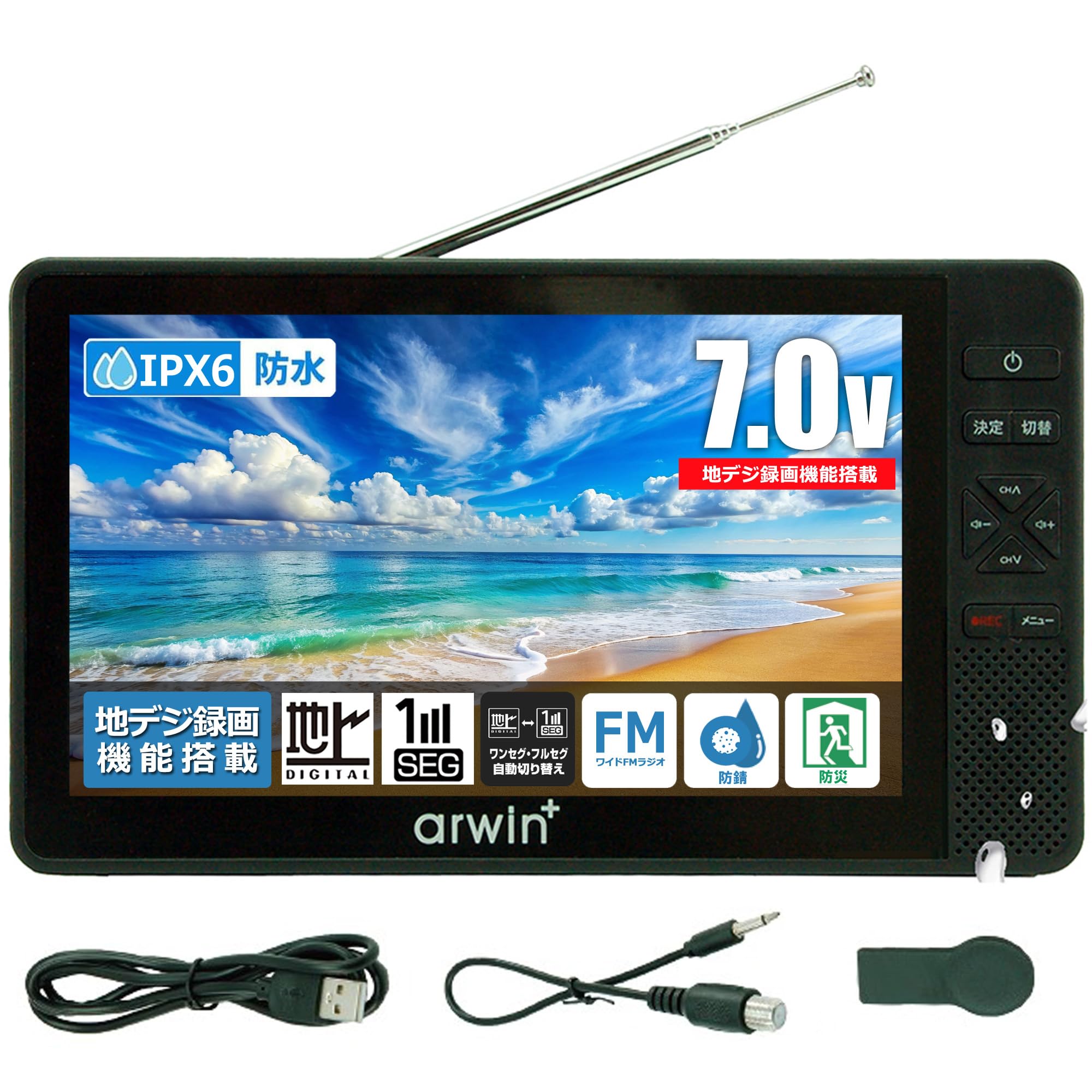 [東京Deco] 防水テレビ 7型 お風呂用 ポータブル ブラック 携帯 FM/AMラジオ搭載 [災害時にも役立つ5つの機能] IPX6 ワンセグ