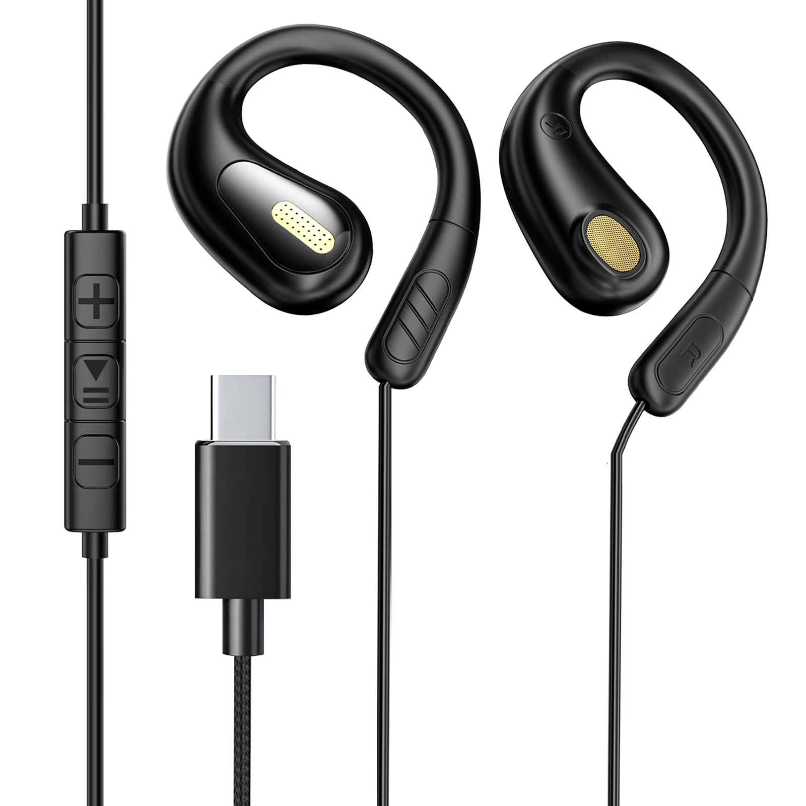 USB Type C オープンイヤー イヤホン 有線 耳を塞がない 耳掛け マイク付き ながら聴き 開放型 イヤホンマイク 着信対応 音量調整 潔癖