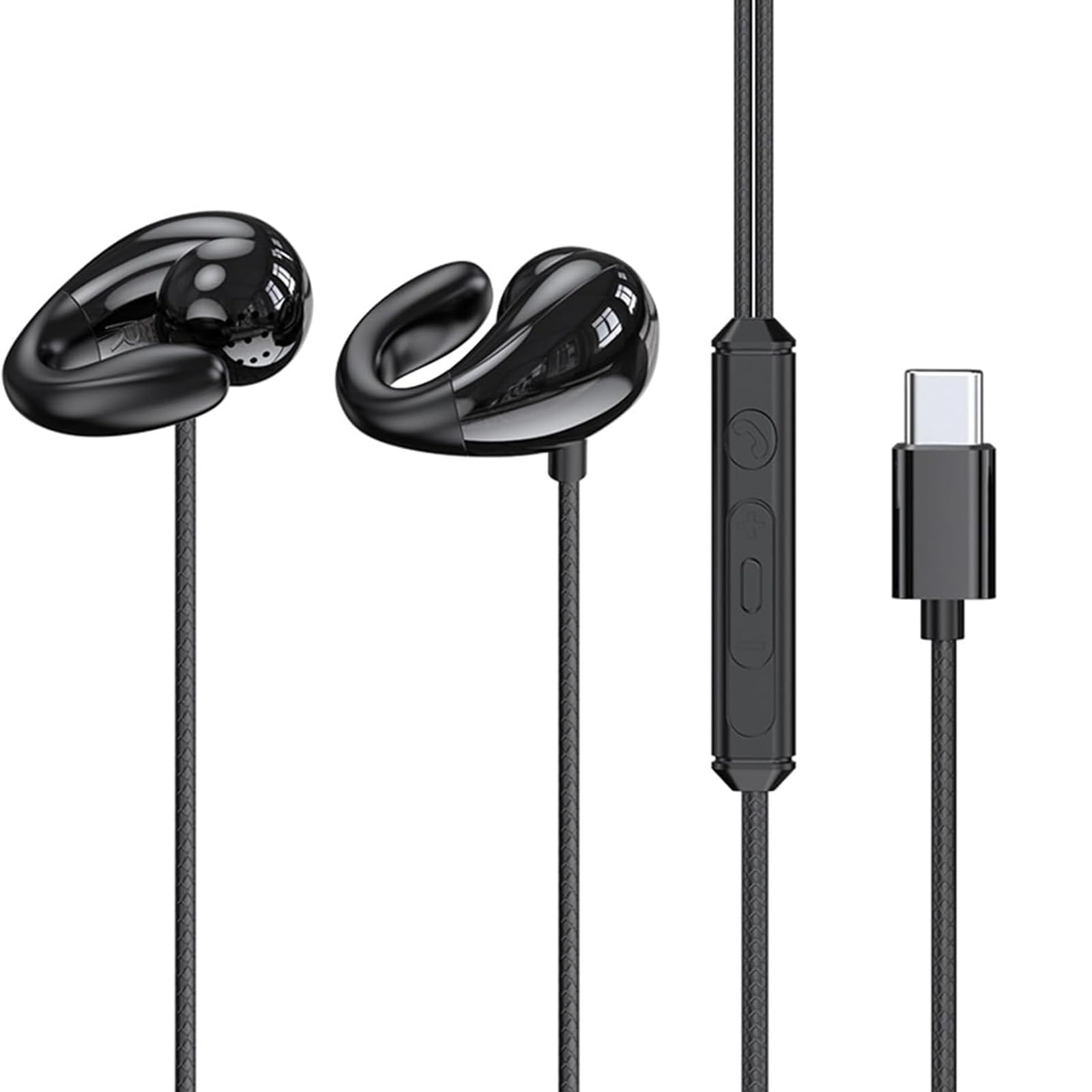 軽量空気伝導有線イヤホン 3.5mm&Type-C 対応/マイク付き/耳塞がず/音漏れ防止/遅延 0 / ゲーム・オンライン会議向け (USB-C)